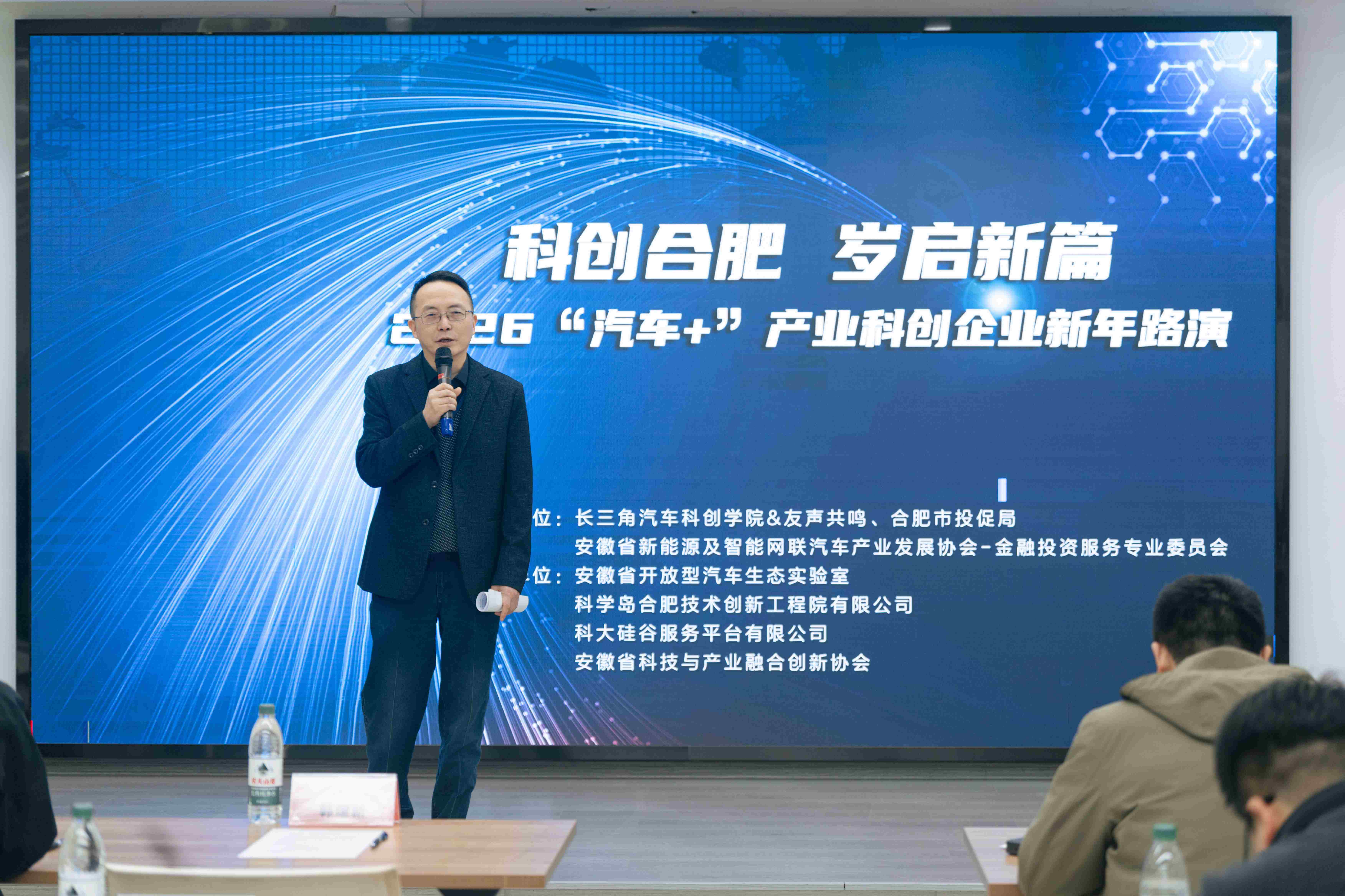 新年伊始,万象更新。为搭建产业与资本的高效对接桥梁,推动汽车科技创新成果转化,助力创新创业企业成长,1月8日,2026“汽车+”产业科创企业新年路演在合肥创新院成功举办。活动由长三角汽车科创学院与合肥市投促局、安徽省新能源及智能网联汽车产业发展协会金融投资服务专业委员会联合主办,安徽省开放型汽车生态实验室、科学岛合肥技术创新工程院有限公司、科大硅谷服务平台有限公司、安徽省科技与产业融合创新协会等多家单位提供支持,这场开年首场高规格科创路演,以精准对接、深度赋能为核心,为新一年安徽汽车产业发展激活创新潜能。