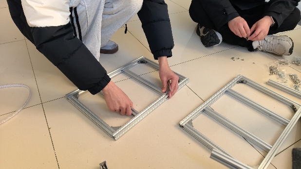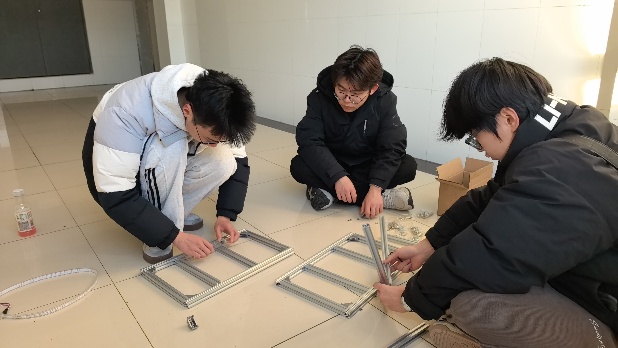 团队成员共同拼装框架