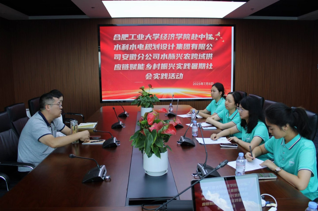 2025年7月8日至11日,合肥工业大学经济学院赴中铁水利水电规划设计集团有限公司安徽分公司及芜湖实践基地调研“水脉兴农”跨域供应链赋能乡村振兴暑期社会实践团队在安徽省合肥市以及芜湖市开展“三下乡”社会实践,聚焦水利赋能乡村振兴,走访水利企业、城市排涝设施及多个乡村,探索水利助力城乡发展的路径。